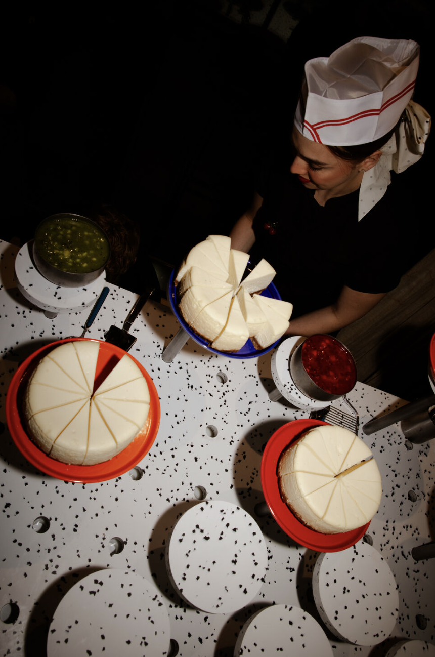 A dessert moment that isn’t cake, aka display of monochromatic NY-style cheesecake